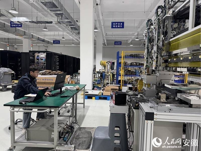 拓乘电子工作人员正在调试设备。人民网记者 胡雨松摄